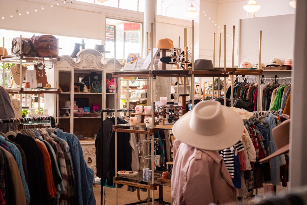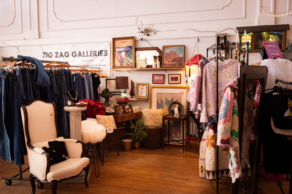 Zig Zag Galleries is a contemporary art gallery that hosts regular art shows and community events, as well as a retail space featuring a hat bar, charm bar, apparel, accessories, and – of course – vintage. Their vintage section is packed with nostalgic finds including cameras, watches, graphic tees, dresses, and denim. Take a dig through their hat bar and customize a hat with some vintage flair – think quirky pins, retro playing cards, and classic matchbooks. Learn more about Zig Zag Galleries in this episode of our Denison Stories series!
