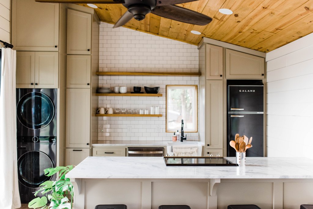 Upon arrival, Tyler and his family checked into their stay at Texas Tiny Cabins. Set on 40 scenic acres, these modern tiny cabins are perfect for family adventures with two sleeping spaces, full kitchen, spacious living area, and a stocked pond with kayaks.