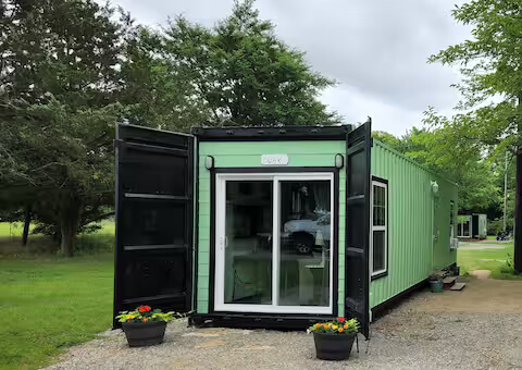 This shipping container home offers BIG living in a tiny space. All you need for a great vacation at your fingertips. Step out of the busy world and enjoy some peace and quiet at Green Acres. Though we like kids, this property is “not suitable for little ones”. The container home is small, cozy, and designed for couples or singles, wanting to relax, while just a short drive from restaurants and casino entertainment.